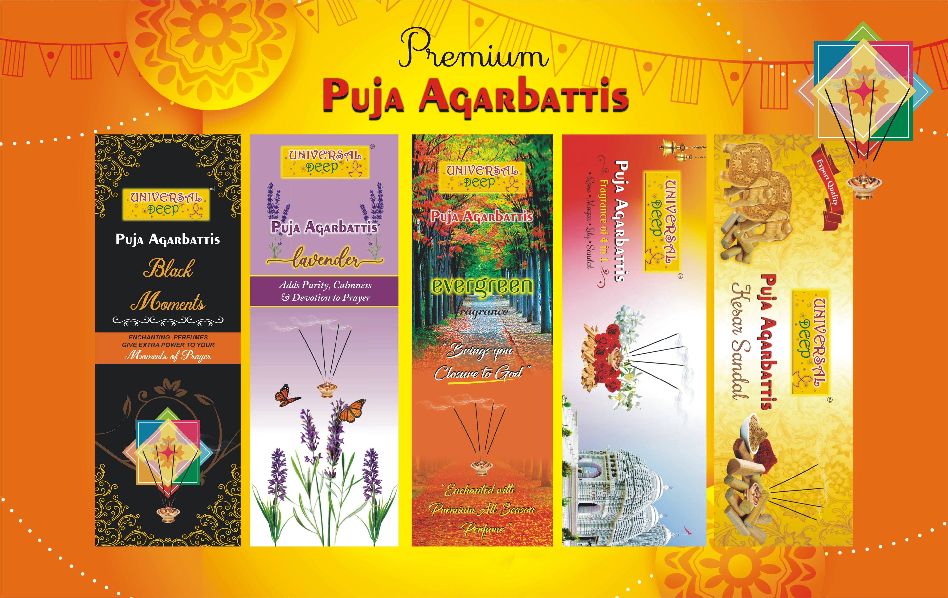 Universal Deep Puja Agarbattis/Incense Sticks - Kesar Sandal, Aromatic Fragrance, Long LastingRegular price From Rs. 27.00Regular priceUnit price perRs. 30.00Sale price From Rs. 27.00Sale