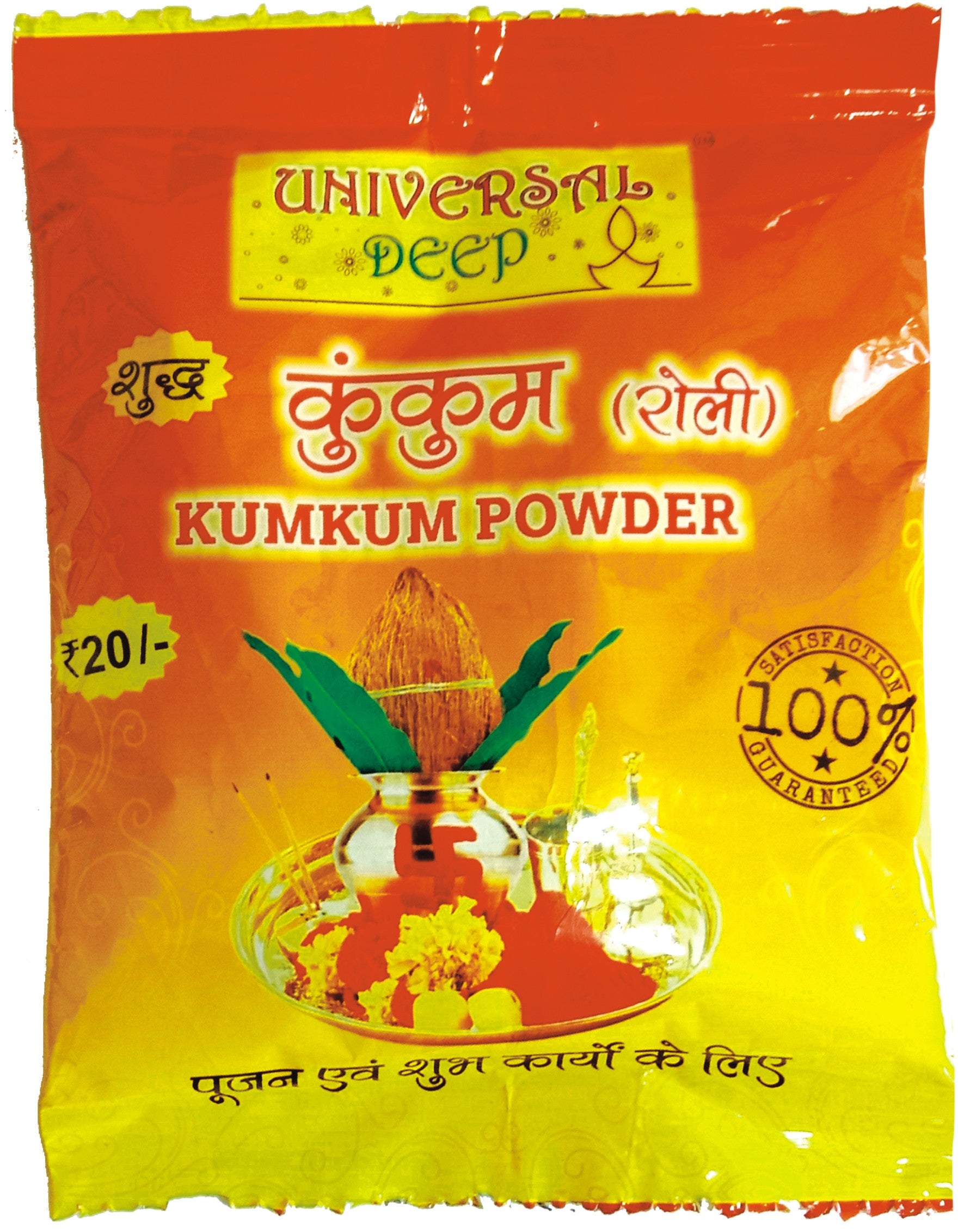 Add a divine spark to your religious ceremonies with Kumkum Powder (Roli)! This vibrant and fragrant powder is traditionally used in Hindu religious occasions like Puja, Marriages and more. Made from pure turmeric, this powder is the perfect way to show respect and reverence for deities. Make your solemn occasions even more special with Kumkum Powder (Roli)!