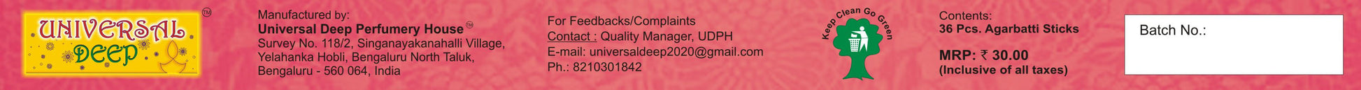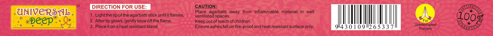 Experience the power of Jasmine Agarbatti! Our Universal Deep Jasmine Agarbatti is crafted with pure, natural ingredients that deliver a blissful aroma and help you relax. Experience the calming and spiritual effects of this 36-stick pack, perfect for meditation and yoga. Reach an elevated state of relaxation with Jasmine Agarbatti from Universal Deep.
